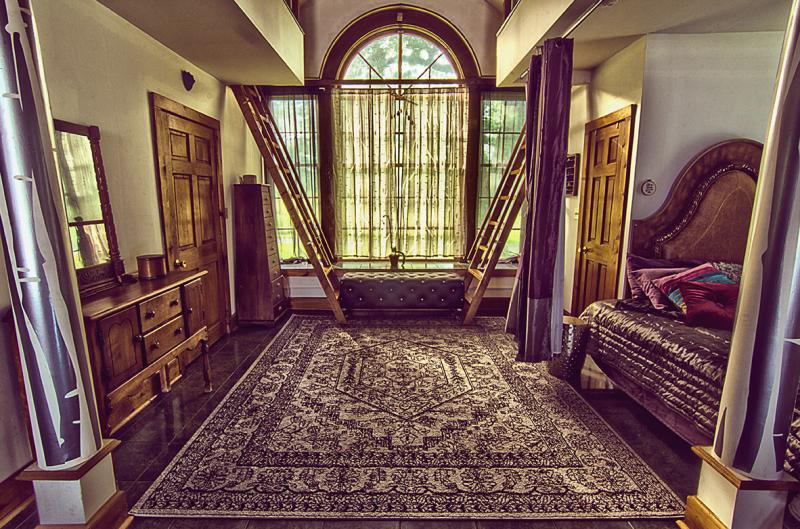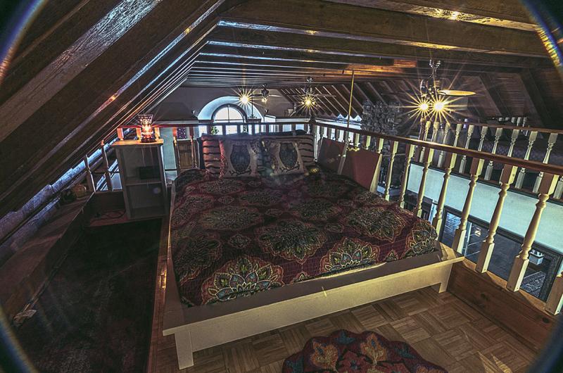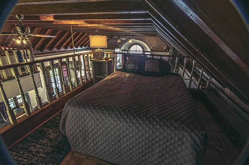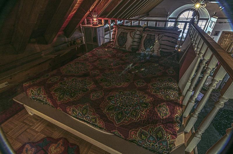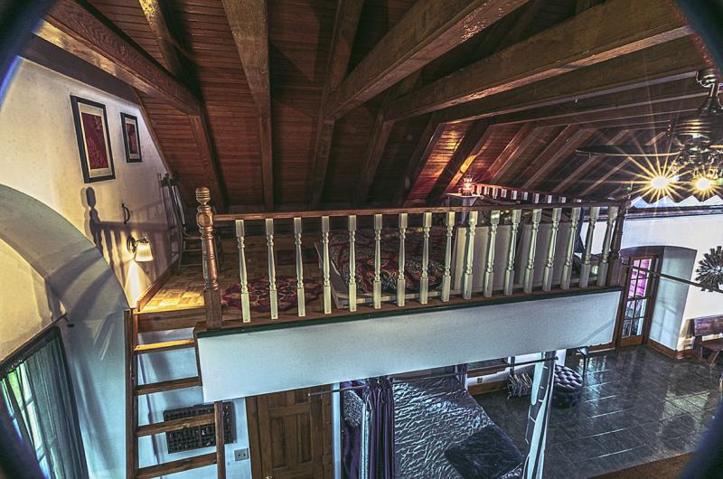 The two house lofts provide additional sleeping areas for guests- one with a double bed, and the other with a queen bed. Both are cozy, comfortable, basic bedrooms, with a lamp, nightstand, and chair. Guests sleeping in the lofts enjoy the open setting that allows for the smells of fresh coffee and breakfast to reach upstairs to wake up them up each morning. They serve as cozy little nooks and your own personal hiding place.