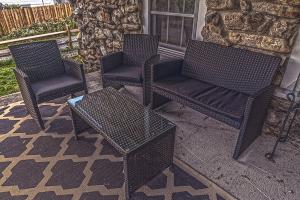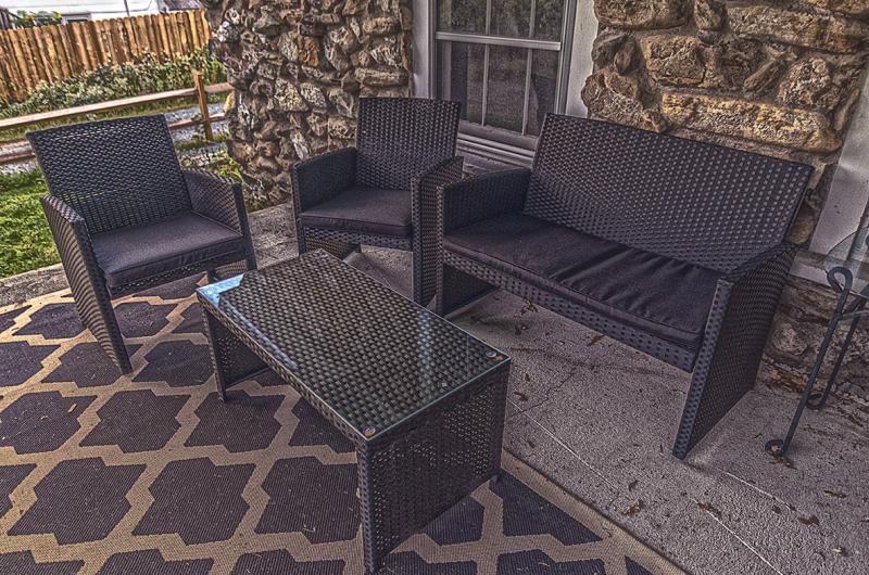 The front porch faces the road and is another outside space to take in fresh air in the shady mountain breeze. The furniture here is often a mismatch of collected items meant to be a place for people to gather, laugh, and enjoy each other. It’s also a great place to watch a thunderstorm.