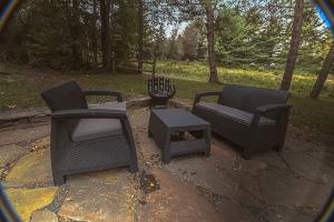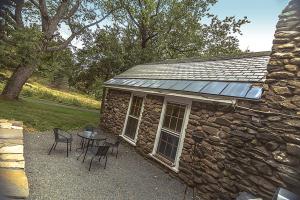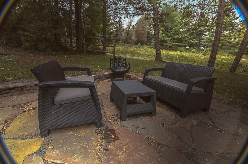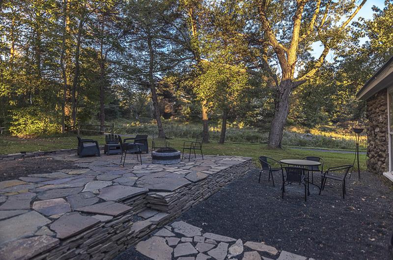 The patio is newly updated for Spring 2015 Stone House guests, and an area where you can't help but want to hang out. The flowers that adorn it have been relocated from a bed my mother planted herself, while the visual art and seating are locally-sourced to give this country patio character. A small fireplace is also out here for late nights under the spectacular moon and display of stars. My mom often reminded me to look up at them, and it’s a great thing to make a habit of.
